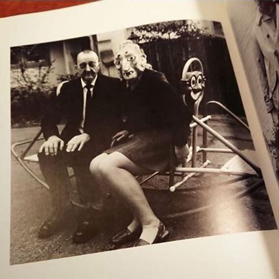 ルーシーベル・クレーターの家族アルバムと題された本書は、自身や妻など身近な人々に、ハロウィーンでかぶるようなマスクを着けてモノクロで撮影されたものです。写真には短いテキストが添えられていますが、それによるとルーシーベル・クレーターの夫や友人の名前もすべてルーシーベル・クレーターという設定になっており、滑稽なような不気味なような非常に不思議な感覚にさせられます。それと同時に、名前や顔が隠された彼の作品はポートレイト写真というジャンルに面白いアプローチで切り込んでいるようにも感じられます。
