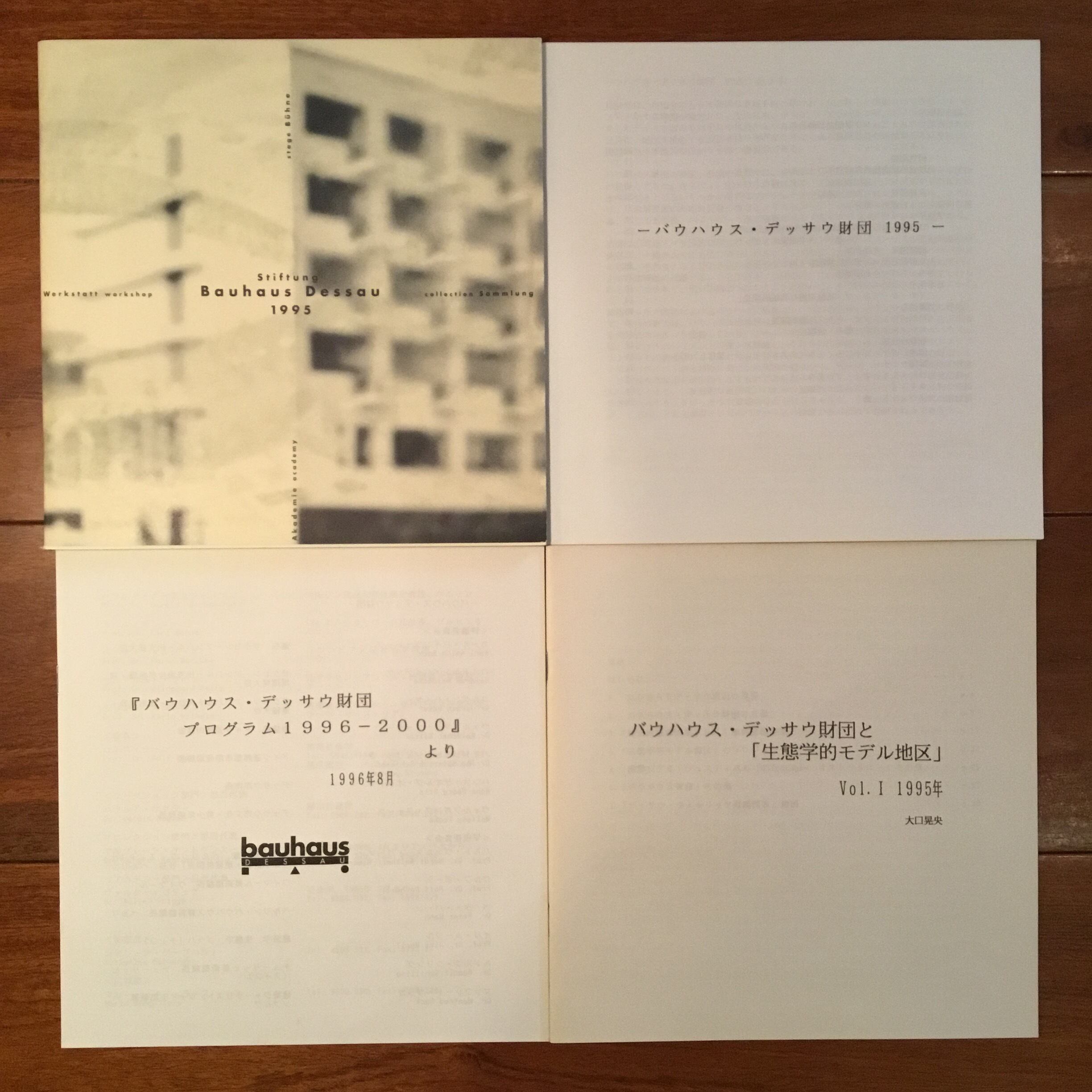 状態:各独文・和文2分冊 封筒入(上部切取少イタミ)冊子「バウハウス・デッサウ財団と生態学的モデル地区」Vol.1(大口晃央1995),「バウハウス・デッサウ財団 プログラム1996